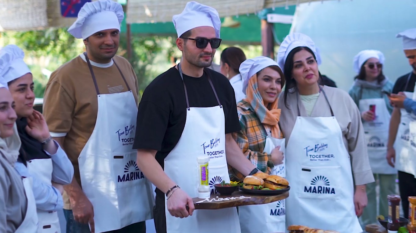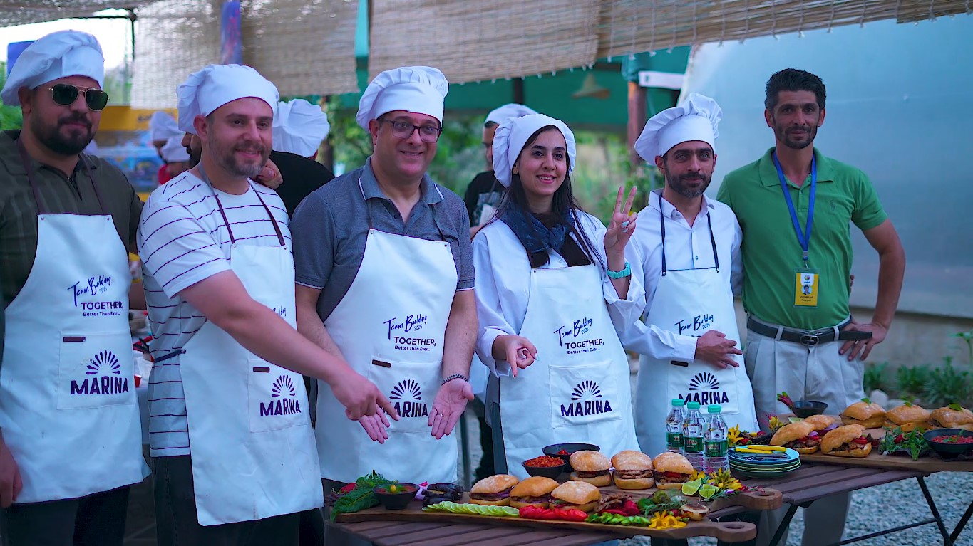 در این تجربهی خاص، ۶ تیم و در مجموع ۱۵۰ نفر از همکاران مارینا در قالب یک رقابت دوستانهی آشپزی شرکت کردند. هر تیم در ایستگاه مخصوص خود، با مواد اولیه محدود و چالشهای طراحیشده توسط تیم کامزی، باید یک ناهار خوشطعم و چشمنواز آماده میکرد.